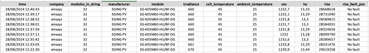 在標準測試條件 (STC) 下,組串短路電流 (Isc) 為 18.44 A。值得注意的是,儘管組串數量增加了五個模組,但其預期電壓與先前測試的隆基組件組串幾乎相同。然而,EGING 組件的電流預計會顯著提高。